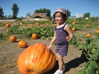 Mom and Dad (I've recently dropped the last couple letters from "Mommy" and "Daddy") took me to the pumpkin fair in Irvine park where Poh Poh used to take Mom when she was a little girl. Ah Yi even came to meet us!